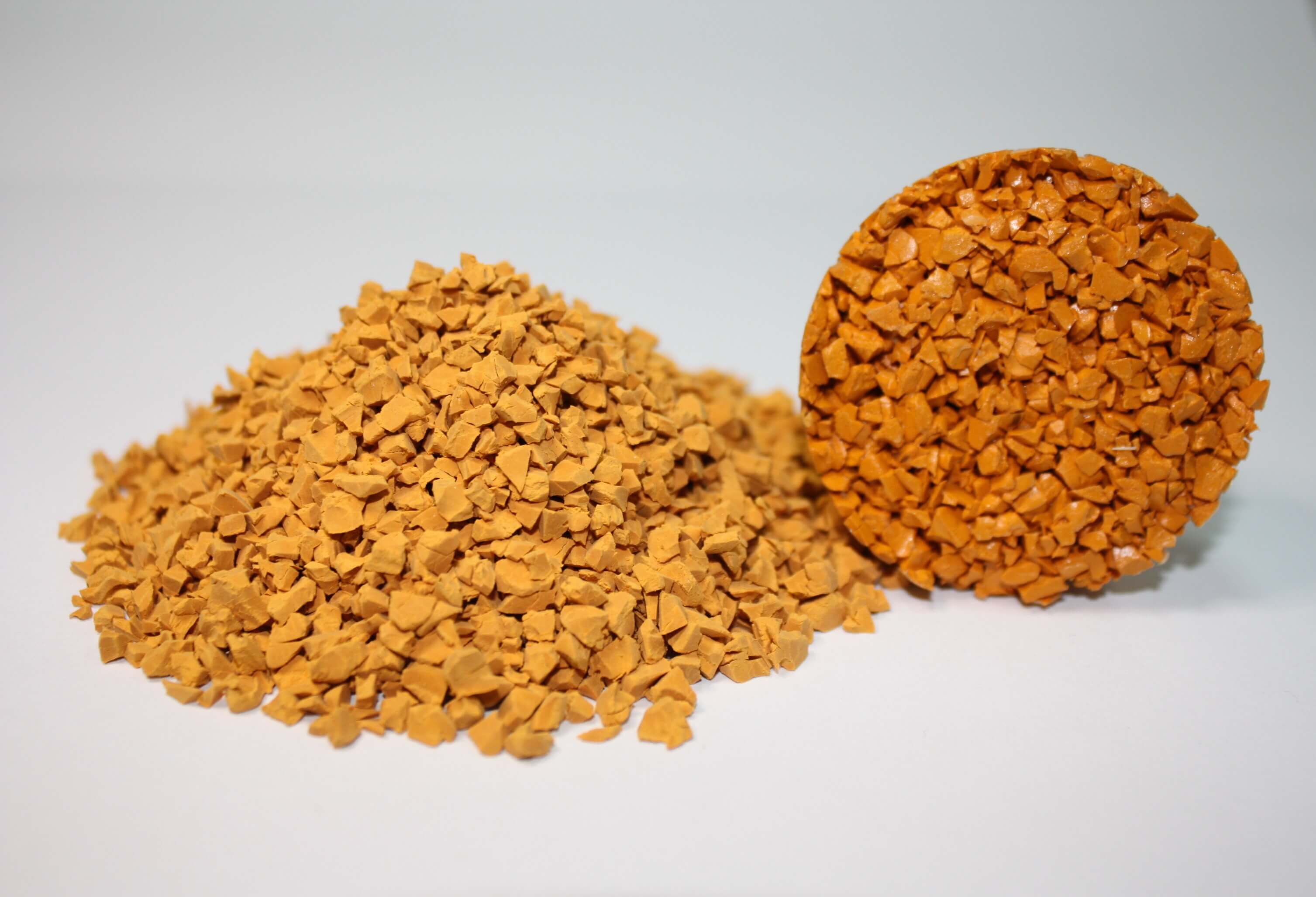Покрытия на основе TPV (термопластичного вулканизата) гранулята цвета «Тыквенно-желтый» — это высокотехнологичное решение для создания выразительных и невероятно стойких осенних акцентов в ландшафте. TPV позволяет с филигранной точностью воспроизвести и закрепить этот сложный природный оттенок, насыщенный и глубокий, как осенний плод. Специальные пигменты и стабилизаторы последнего поколения гарантируют устойчивость цвета к интенсивному осеннему и летнему УФ-излучению. Материал обладает премиальными эксплуатационными характеристиками: он абсолютно травмобезопасен, нетоксичен и экологичен. Благодаря инновационной формуле, TPV демонстрирует превосходную стойкость к экстремальным перепадам температур (от осенних заморозков до летней жары), истиранию и любым осадкам, что обеспечивает долговечность покрытия и его идеальную интеграцию в естественную среду на протяжении многих лет.